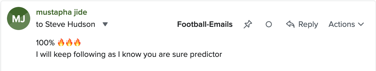 I have received over 100 5-star reviews independently verified. I don't say this to boast, but to reassure you that you are getting the very best football tips when you join Football Booster Tips.